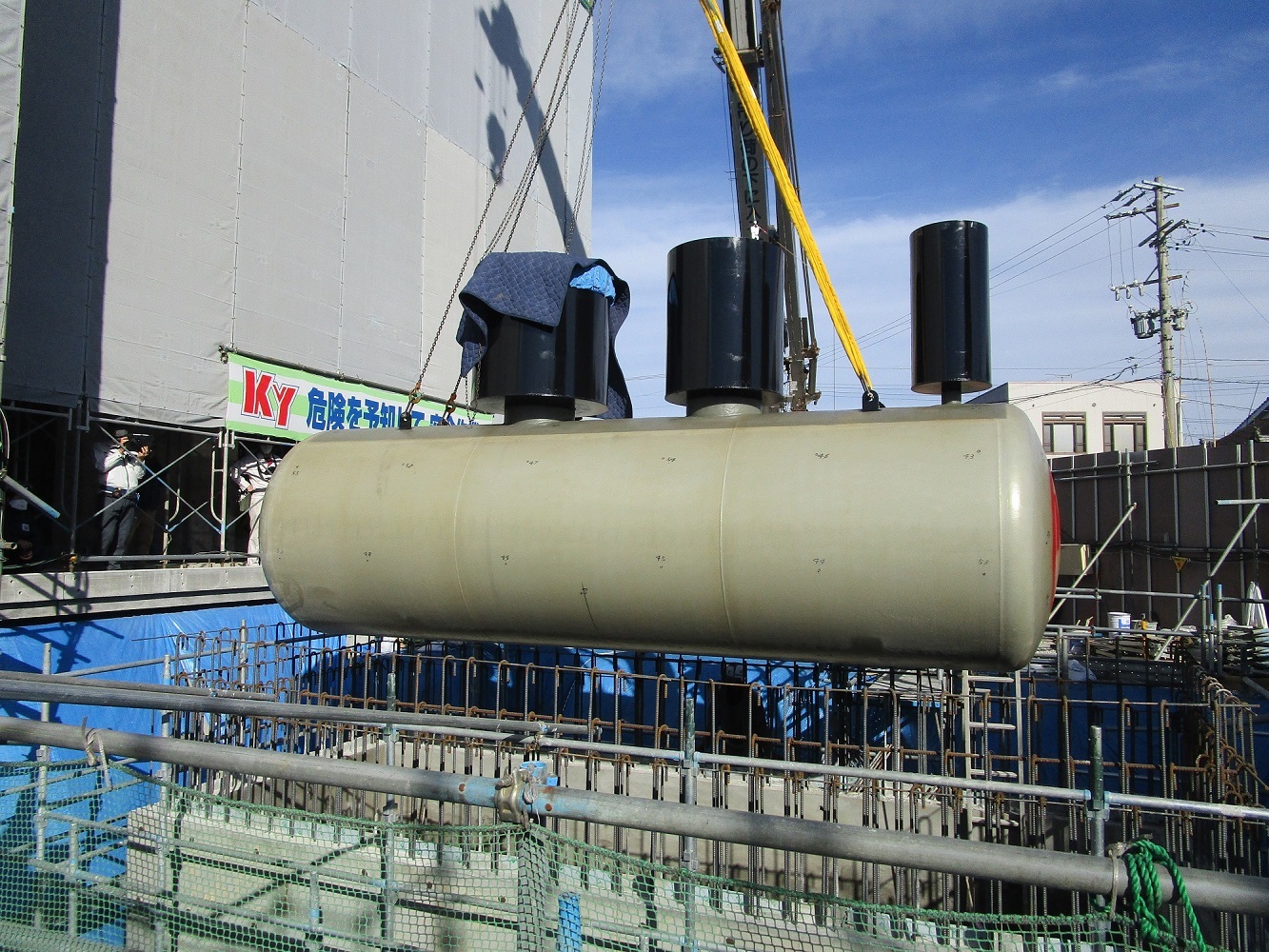 新庁舎に設置される非常用発電設備の燃料タンクが建物の東側敷地内に埋設されました。