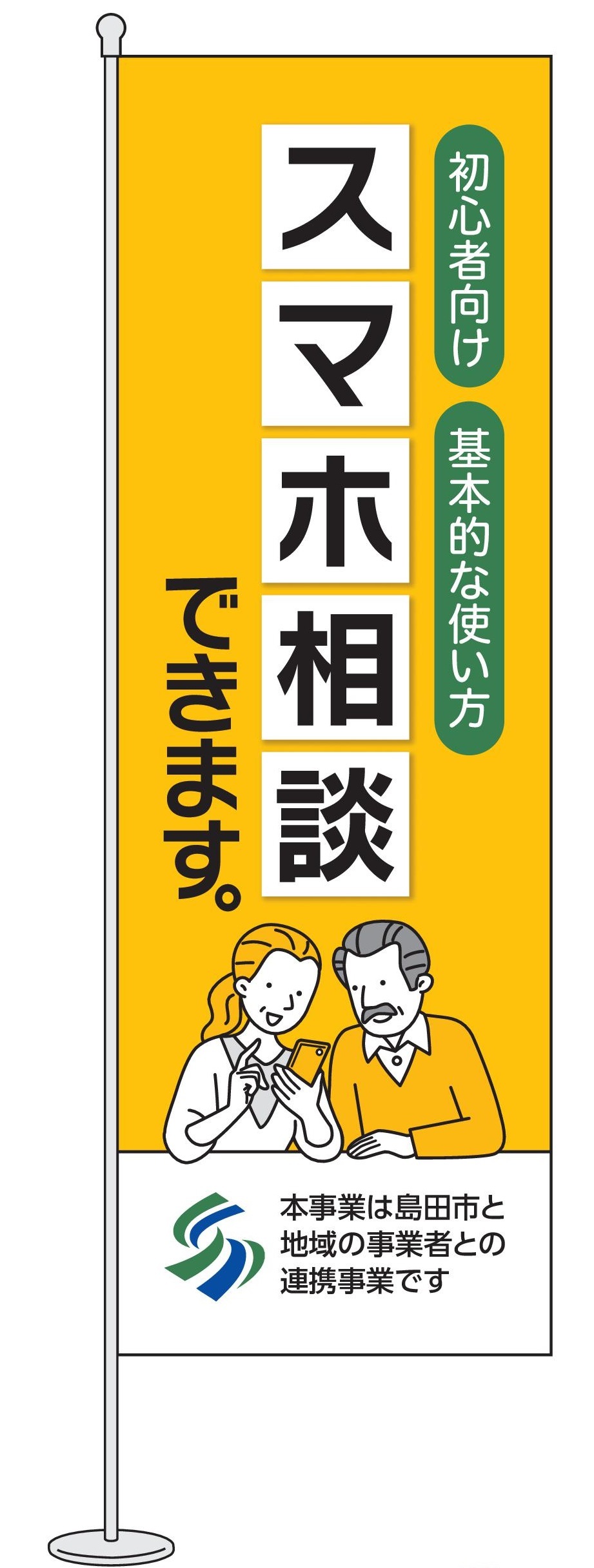 島田市では、地域一丸となり、国が目指すデジタル社会のビジョン「誰一人取り残されないデジタル社会の実現」の実現を目指しており、スマートフォン端末について、「身近で気軽に相談できる場所」の一つとして、事業者様の窓口を相談場所として活用いただくことを推進しています。