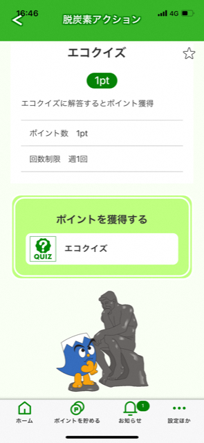 アクションごとに取り組み方法や施設、もらえるポイントが異なります。