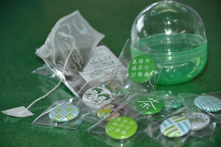 市のシティプロモーション「島田市緑茶化計画」の一環として開発したトイカプセル ガ茶々(がちゃちゃ)。ガ茶々は市と島田市茶業振興協会の3支部の青年部と大井川農業協同組合が協力して制作した コンセプトティー(ティーバック)とオリジナル缶バッジがカプセルに入っているものです。平成29年3月に渋谷ロフトで行った島田市緑茶化計画テストマーケティングにあわせて開発されました。