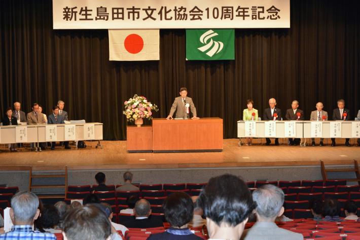 島田市文化協会が創立10周年を迎え、記念式典がプラザおおるりホールで開催されました。