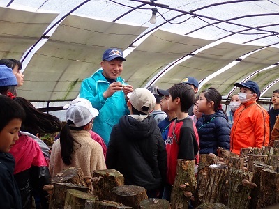 今回のしいたけの菌打ちは、伊久美地区の坂本清さんを講師に、伊久美小学校で実施しました。子どもたちは、坂本さんと一緒にドリルでホダ木に穴をあけ、あけた穴に手でしいたけの菌を詰めていきました。出来上がった木を藁にくるむ作業では、友達と協力してやる姿が見られました。しいたけハウスで坂本さんから育て方や食べ方をお聞きし、子どもたちはしいたけが出てくるのが楽しみになったようです。大切に育てて、おいしいしいたけが出てくるといいですね!