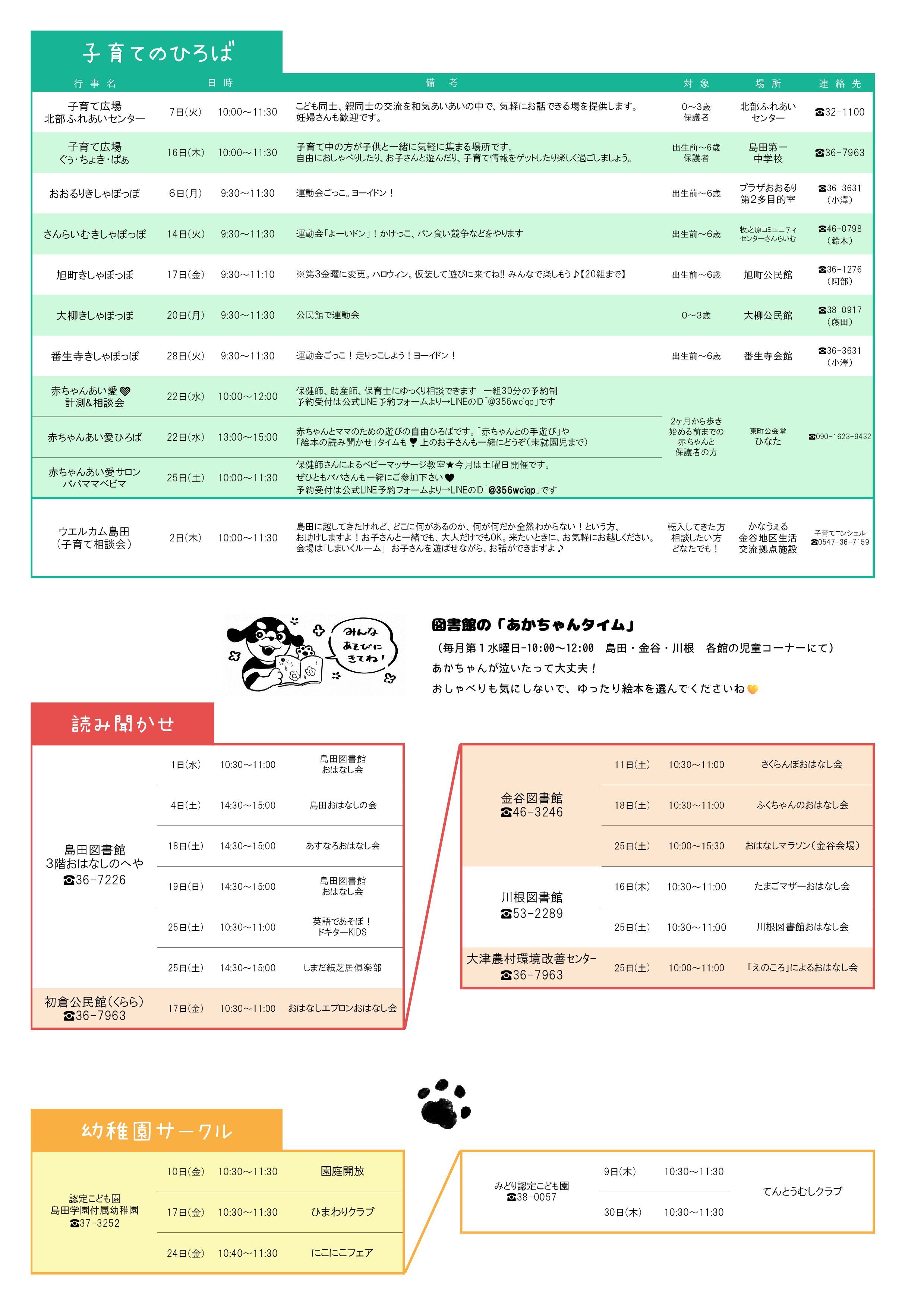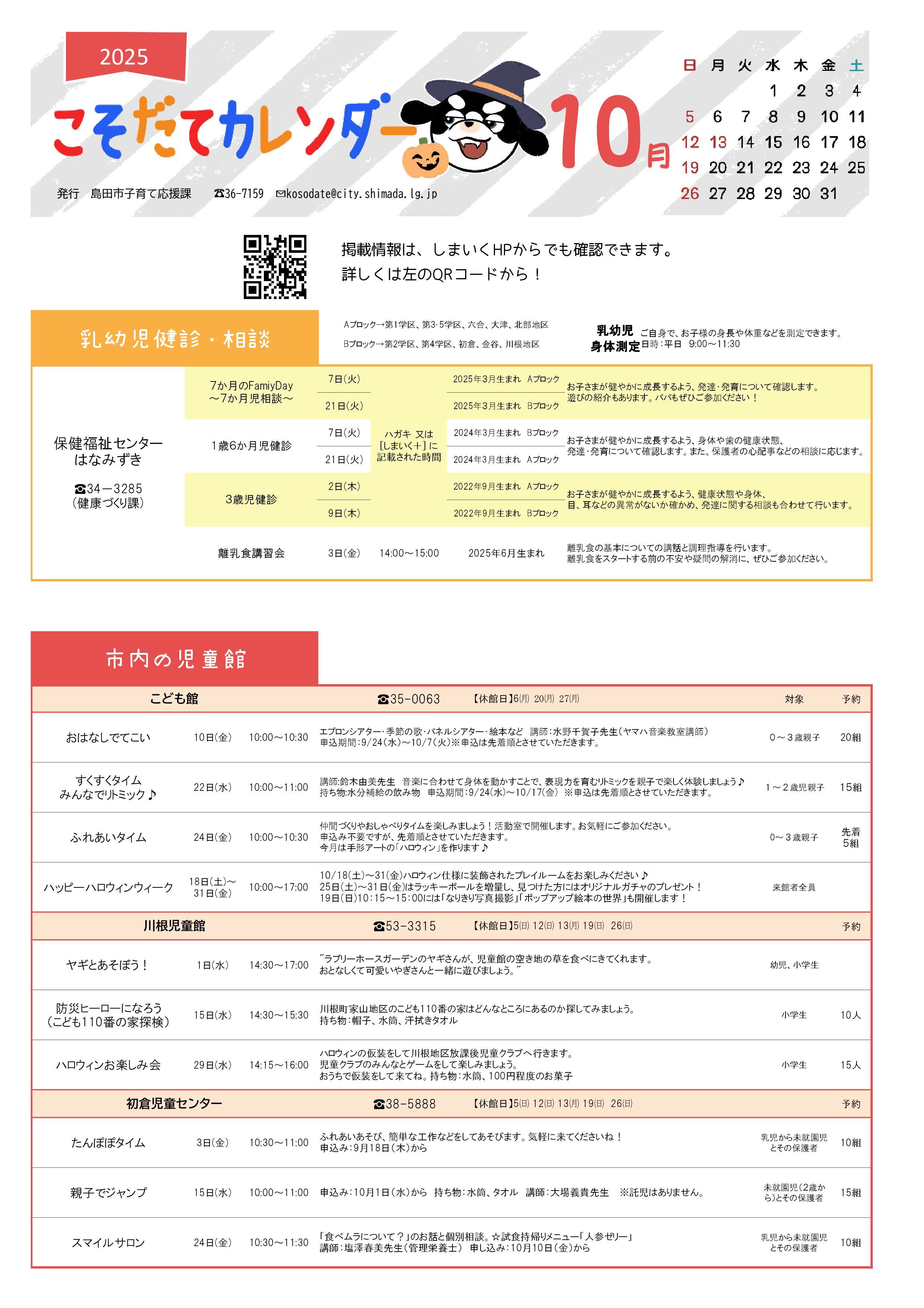 令和7年10月子育てカレンダーPDF版は、令和7年9月30日時点での情報で作成されております。