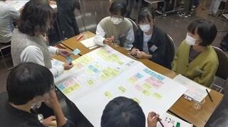 脱炭素・未来ワークショップは、特定非営利活動法人地域持続研究所(千葉大学研究グループOPoSSum)が開発した「未来シミュレータ」を基に、参加者が未来(2050年)の市長になった設定で、未来の市の状態や課題を把握し、現在の市長に提案を行うワークショップです。2050年カーボンニュートラルの達成のために省エネ・再エネがどれくらい必要なのかをシミュレーション体験も行い、脱炭素と地域課題の同時解決を参加者みんなで考えました。